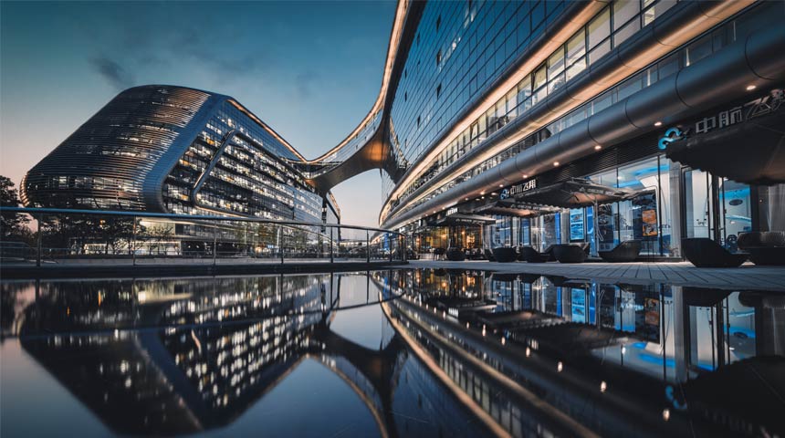 凌空SOHO占地8.6萬余平米、總建筑面積約35萬平方米,12棟建筑被16條空中連橋連接成一個空間網絡。凌空SOHO是SOHO中國與建筑設計師、普利茲克獎獲得者扎哈·哈迪德(ZahaHadid)聯手打造的第3個建筑精品。